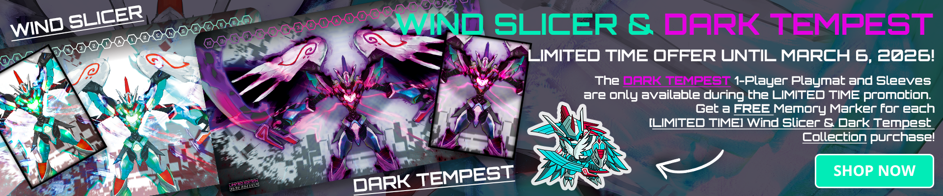 The DARK TEMPEST 1-Player Playmat and Sleeves are only available during the LIMITED TIME promotion!